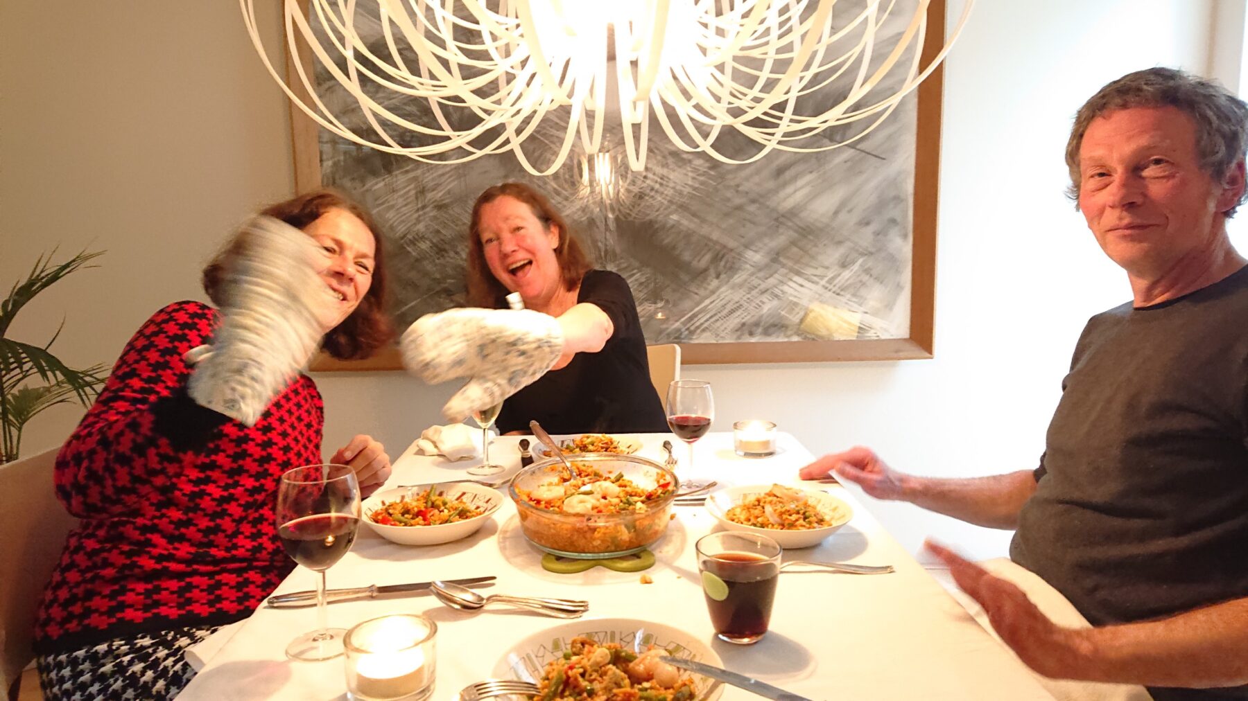 Regelmatig nodigde Anita vrienden thuis op de Karnemelksloot of in ons vakantiehuis Anna aan de Motte uit voor een gezellige avond. Dat alles altijd onder het genot van een heerlijke zelf klaargemaakte maaltijd met een goed glas wijn. We reden voor goede vis vaak naar Urk om super lekkere warm gerookte zalm te kopen bij de ‘Jongens van de Fant’ of ingrediënten zoals gamba’s voor in de Paella. Anita kon dat Spaanse gerecht geweldig goed klaarmaken en het was één van de favoriete gerechten van onze vrienden Kitty en Cor hier samen met Anita in een hele vrolijke bui.