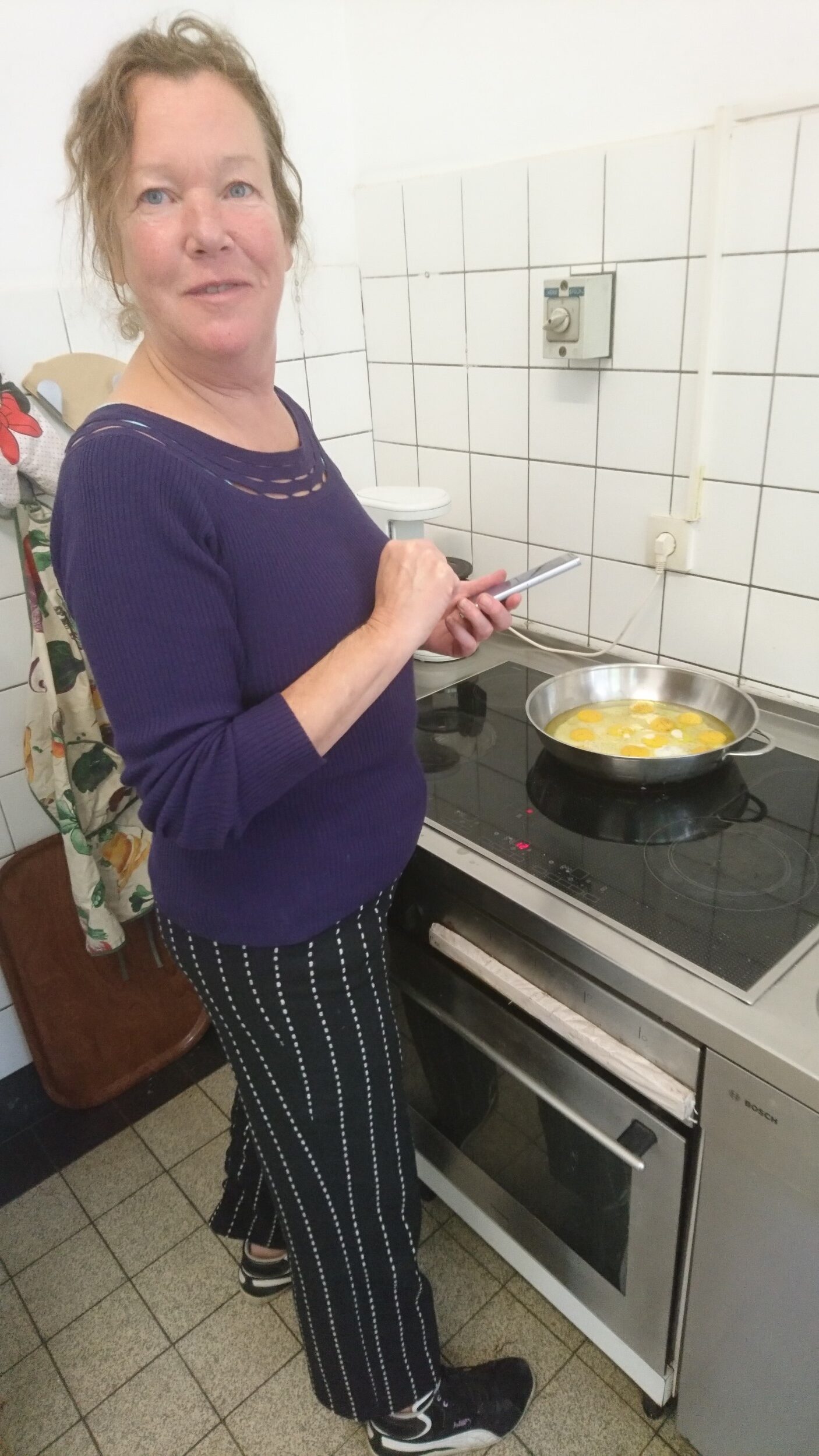 De foto is gemaakt in de grote keuken in het gebouw van de kunstruimte ArToll Kunstlabor. We waren daar met 9 kunstenaars van de Kunststichting Firma Van Drie uit Gouda: Arjenne Vossepoel, Bram Tackenberg, Claudia Huft, Frances van Gool, Jan Mostert, Kees Vossestein, Mieke de Haan, Petra Werlich en Ria Volk die er een week lang intensief werkten in goede sfeer. Ons laatste gezamenlijke kunstproject “Verrückt | Verrukt” werd een onvergetelijk project, waarin we na een week samenzijn en samenleven één familie werden.