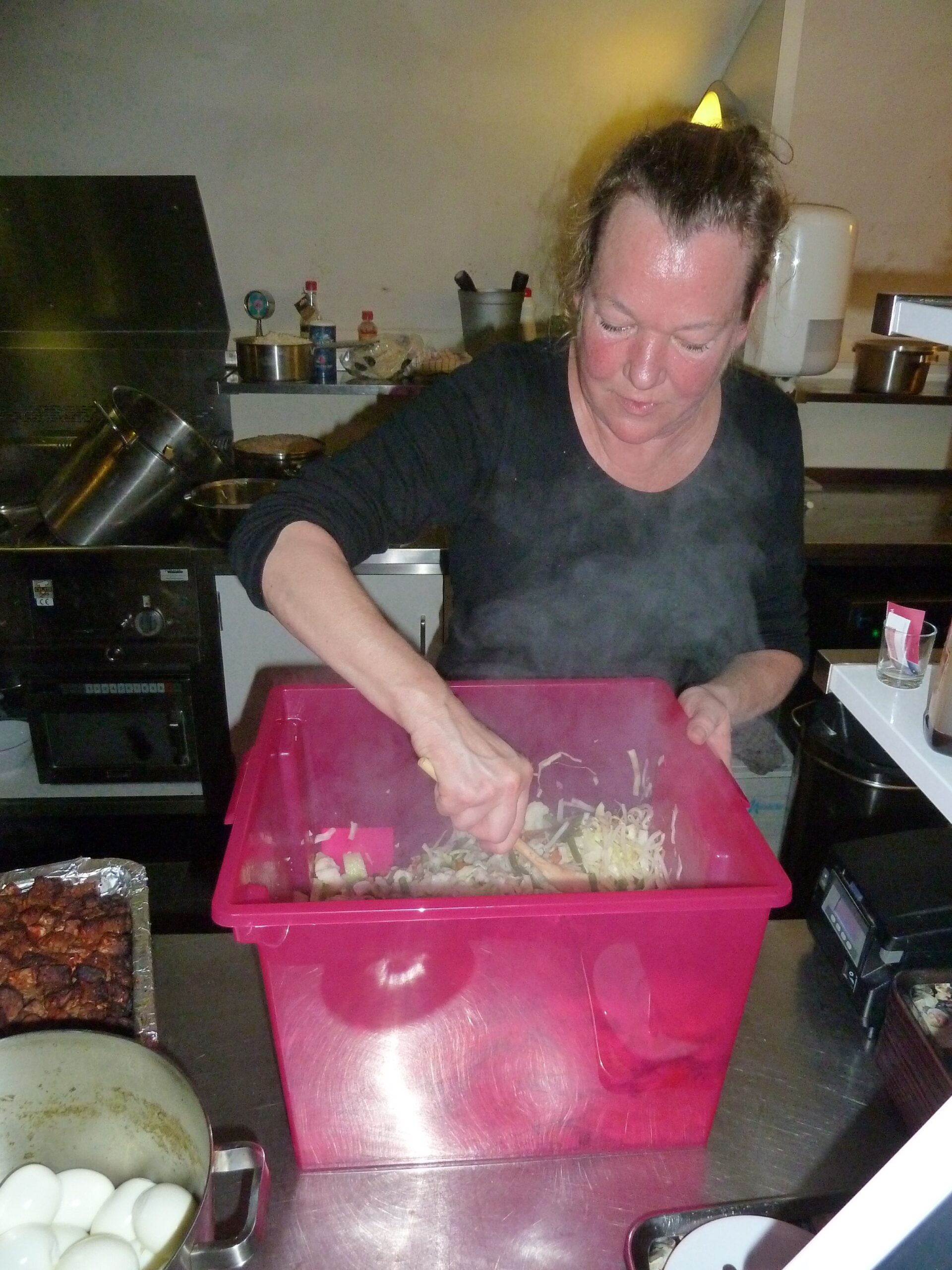 Wat vond Anita dat altijd geweldig koken voor een groep kunstenaars. Het bedenken van de menu’s, de gerechten en in het bijzonder het maken van lekkere vegetarische gerechten, waren voor Anita een mooie uitdaging. Bij de kunstprojecten kookte Anita een week lang voor de kunstenaars. Iedere avond, verrukkelijke diners en vaak werd er ook nog een warme lunch geserveerd voor de hard werkende kunstenaars. De reacties op Anita’s kookkunsten waren altijd super.