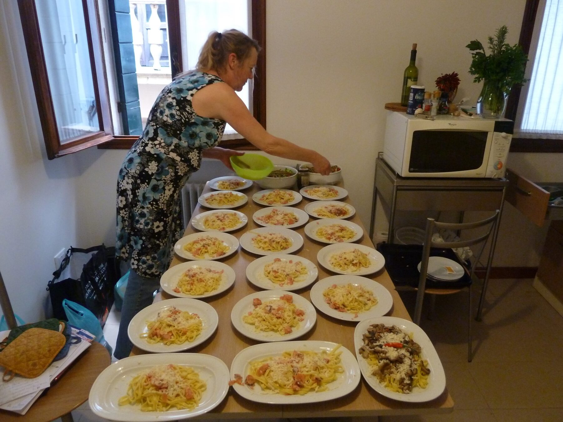 Een week lang kookte Anita voor maar liefst 19 man. Het waren kunstenaars en vrienden van Kunstcentrum Firma Van Drie in Gouda. Zij bezochten de 55ste Biënnale van Venetië op diverse locaties in deze geweldige stad. Terwijl Anita gedurende die dagen aan het kokkerellen was. Ze serveerde dagelijks een heerlijk drie gangen menu in een door ons gehuurd palazzo.